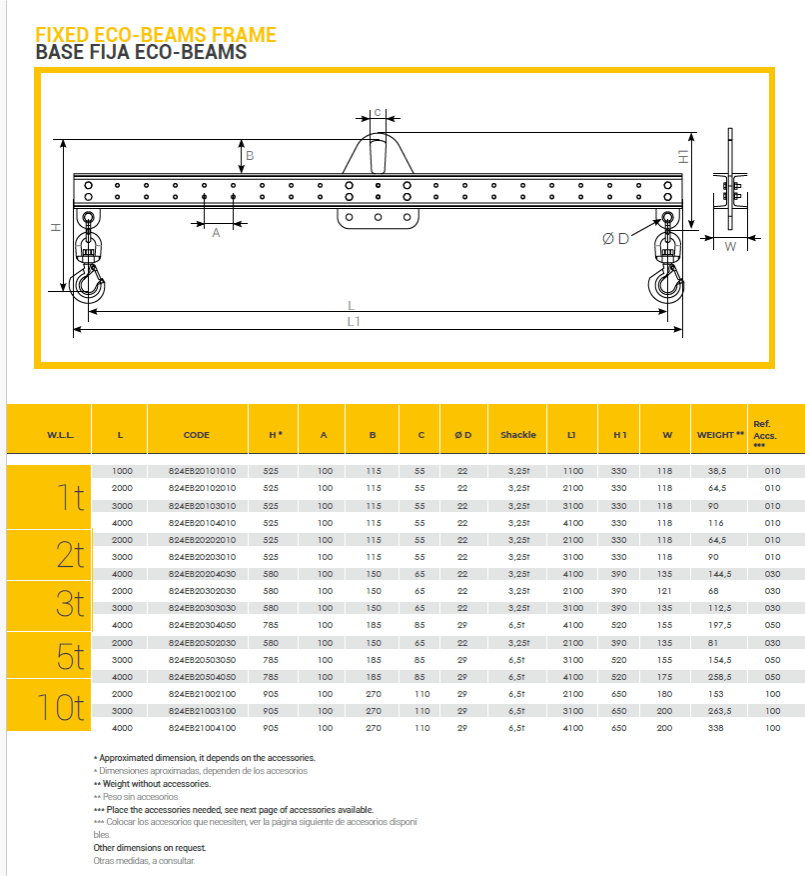 Balancín ajustable con garras de izajes incluidas. Fabricación Española Certificada